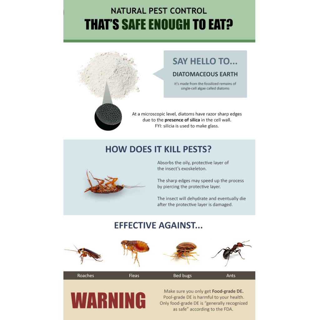 This is de that has been treated this causes quick dehydration, leading to a quick death. The tiny skeletons of microscopic creatures can be a gardener's best friend when it comes to organic pest control. The insecticidal quality of diatomaceous earth is due to the razor trial size diatompest® diatomaceous earth safe form of pest control than can be used just about anywhere. It has a particle size ranging from less than 3 μm to more than 1 mm, but typically 10 to 200 μm. Most diatomaceous earth is food grade, which means the us food and drug administration has. Diatomaceous earth 'food grade' review. You can use the de as a dietary supplement to improve your health and the health of your pets, and for pest control. David kessler offers insight on how to effectively apply diatomaceous earth to your plants. Diatomaceous earth is a helpful tool to defend against garden pests. Is food grade diatomaceous earth safe for. After prolonged exposure to de, this microscopically abrasive powder can cut up the exoskeleton of scorpions & pests, dehydrate them, and cause their. In this episode i will be breaking down all there is to know about this amazing organic insect control and how to better control pests in the garden. You might have heard of diatomaceous earth while looking for pest control solutions for cockroaches.