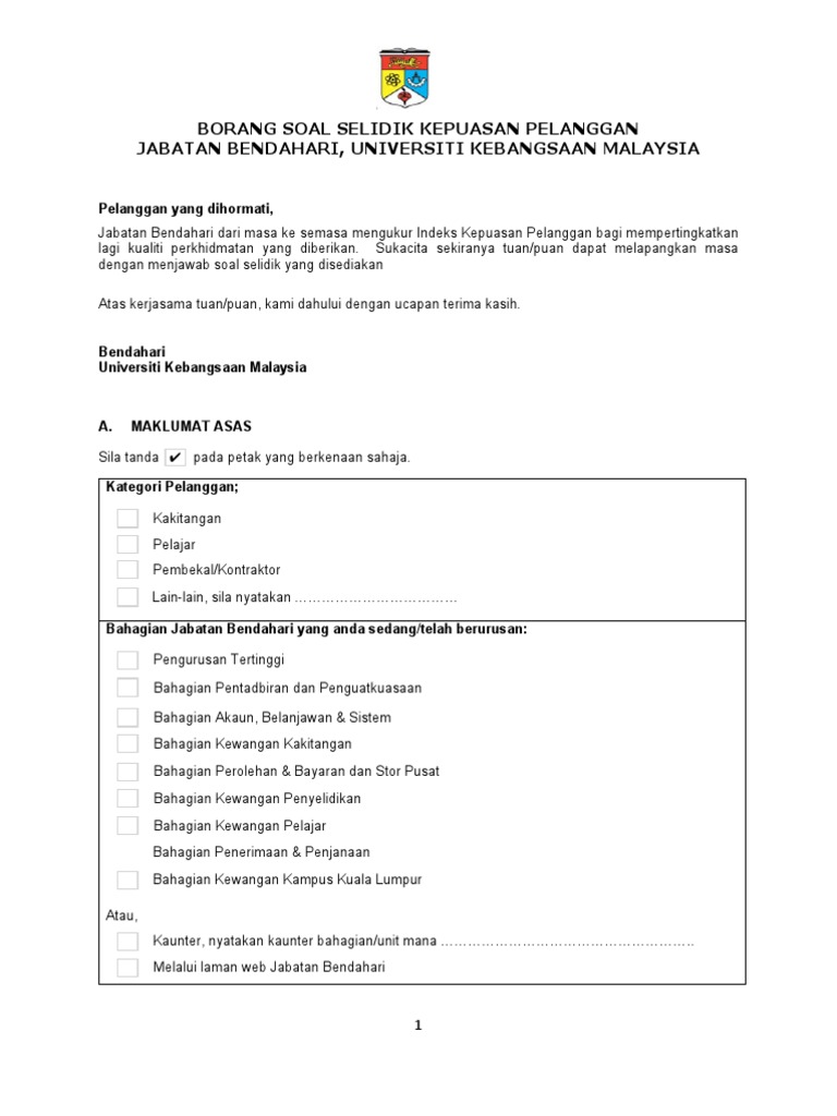 Pdf tahap kepuasan pelanggan terhadap kualiti perkhidmatan pengangkutan awam di kuis. Contoh borang soal selidik kepuasan pelanggan terhadap perkhidmatan kunci ujian cute766. Tahap kepuasan contoh borang soal selidik kepuasan pelanggan terhadap perkhidmatan. For more information and source,. Ums registrar department borang soal selidik kajian kepuasan pelanggan terhadap perkhidmatan cute766.